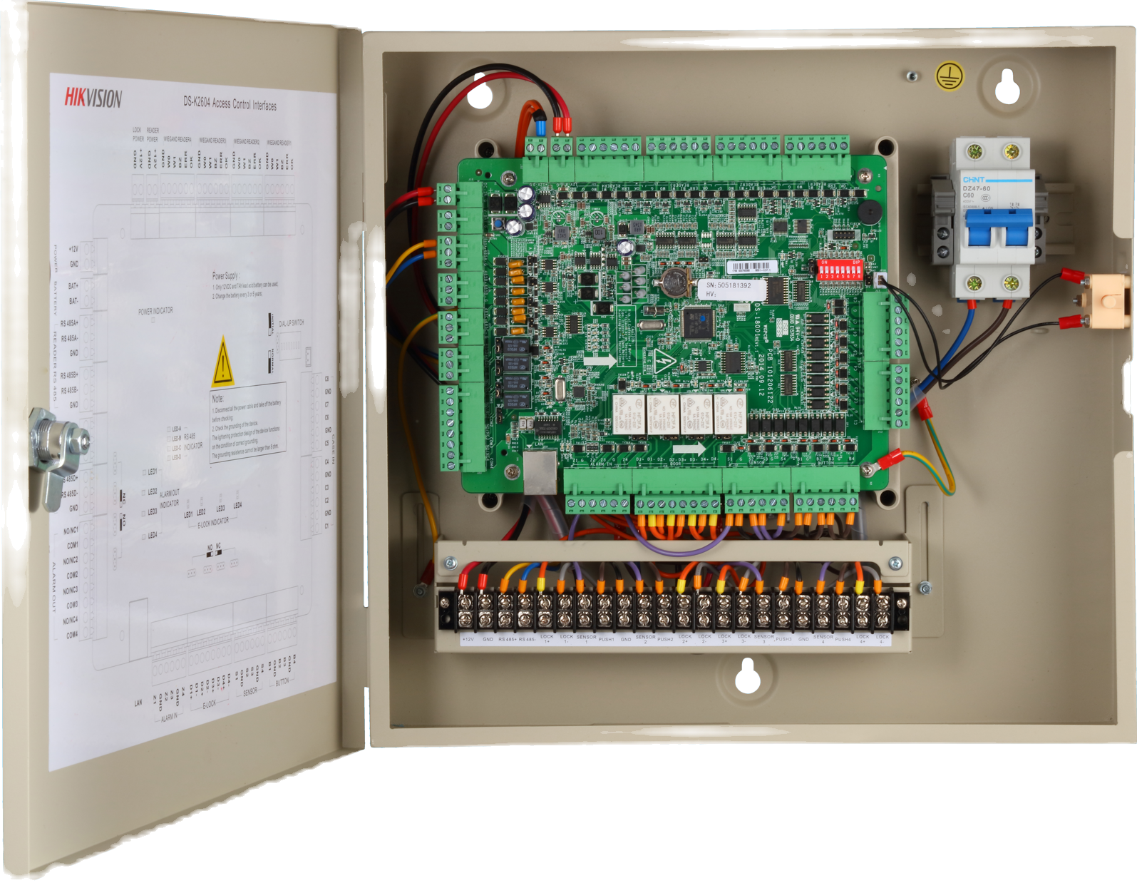 Hikvision door-access controllers integrate with card readers, fingerprint scanners and locks, featuring intuitive web or unified-platform management. Perfect for commercial, industrial and residential deployments.